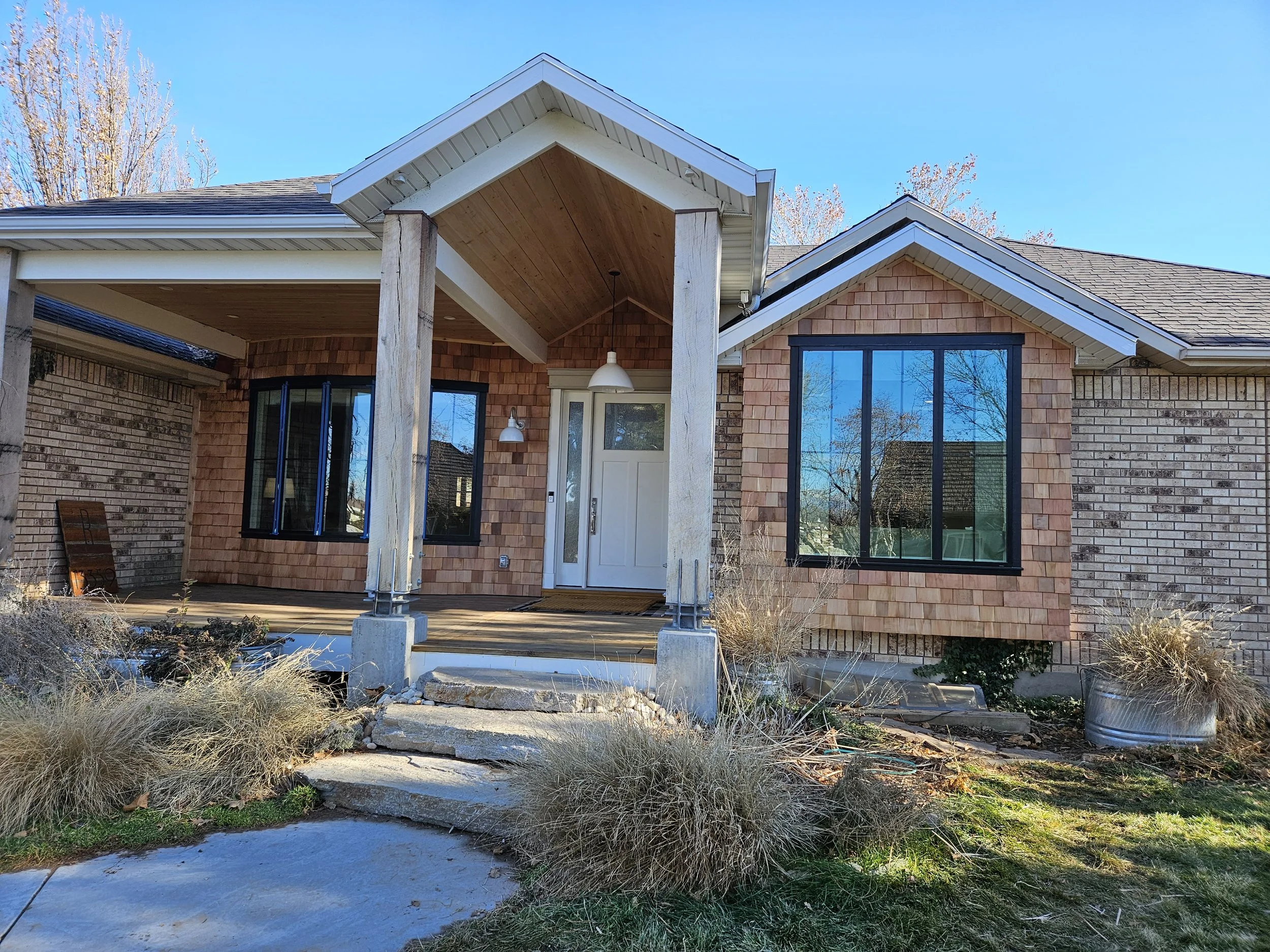 New windows and Cedar Siding really transformed the facade of this home.